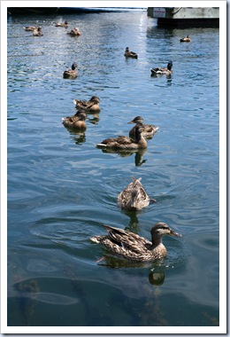 After we left the fountain we went over to see the ducks. I decided to feed them some of my gerber snacks and the greedy gulls kept on swooping in and stealing them! Eventually the ducks got some but the gulls were hovering right above.
