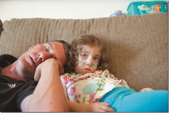 Just kidding… kind of. We were just chilling on the couch and daddy fell asleep!